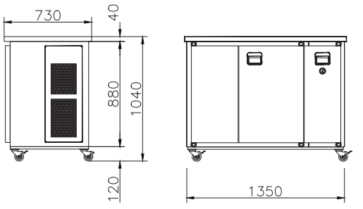Dimenzije: Š/D/V 1.350/730/1.050 mm